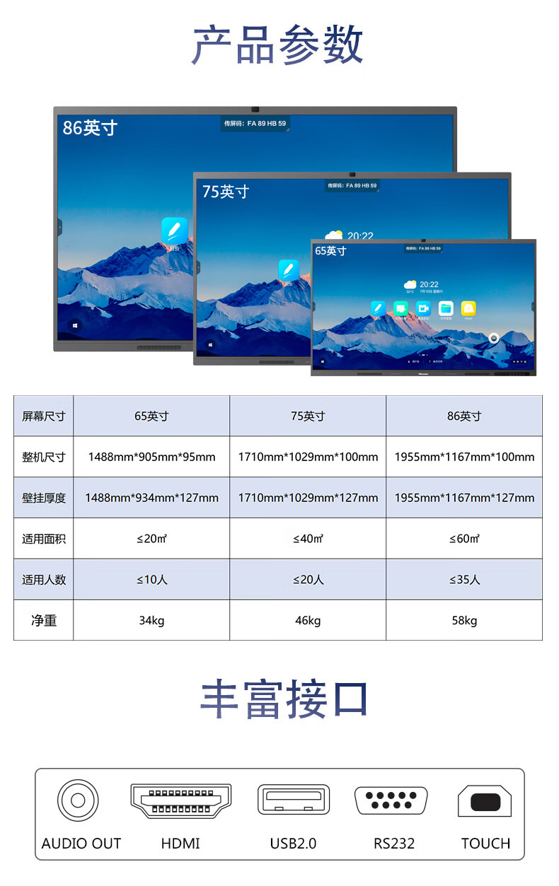 可选尺寸:65寸、75寸、86寸、98寸,优惠购电话:13330333513