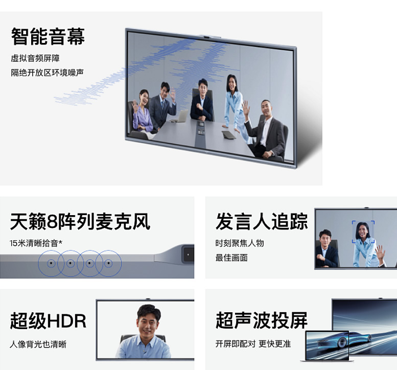 超级HDR,自动平衡光线差异,避免因设备背光造成画面模糊不清,还原更多会议细节,清楚看见发言神态