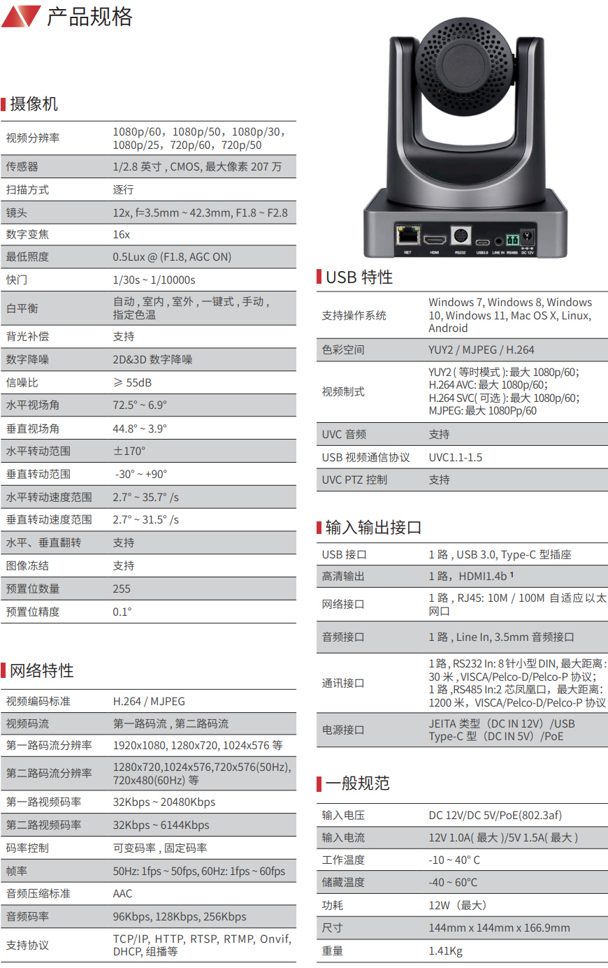 采用 72.5°高品质超广角镜头,光学变焦达到 12 倍,并支持 16 倍数字变焦。