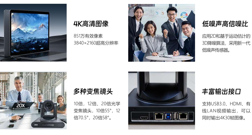 灵犀达Y220是一款全新国产芯片方案打造的,超高清4K云台摄像机,支持USB3.0、HDMI、网口等多种高清视频接口,可实现3840X2160超高分辨率的优质图像输出,具有10倍、12倍、20倍不同变焦镜头,满足不同会议场景应用,支持本地视频存储,可应用于智慧法庭备份存储;支持图像自动跟踪功能,可用于教育培训等场景。