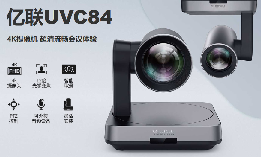 亿联UVC84-USB摄像机结合了4K传感器和全新ID设计,为您的会议提供最佳的视频体验。 12倍光学变焦和3倍数字变焦,将会议室中每个细节尽收眼底,画面可轻松覆盖会议室每个角落,专为中型和大型会议室设计。此外,UVC84拥有80°广角镜头,可通过亿联摄像机控制插件软件或遥控器轻松实现摄像机调节。亿联UVC84摄像机致力于为您提供出色的视频质量,为您提供沉浸式的视频沟通协作体验。