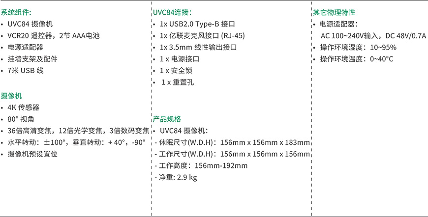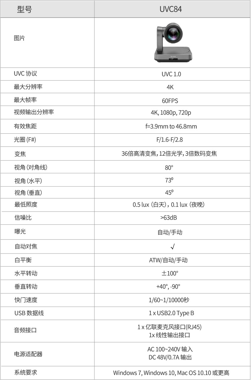 凭借12倍光学变焦、3倍数码变焦和80°广角镜头,UVC84可轻松覆盖中大型会议室,看清远端与会人员。