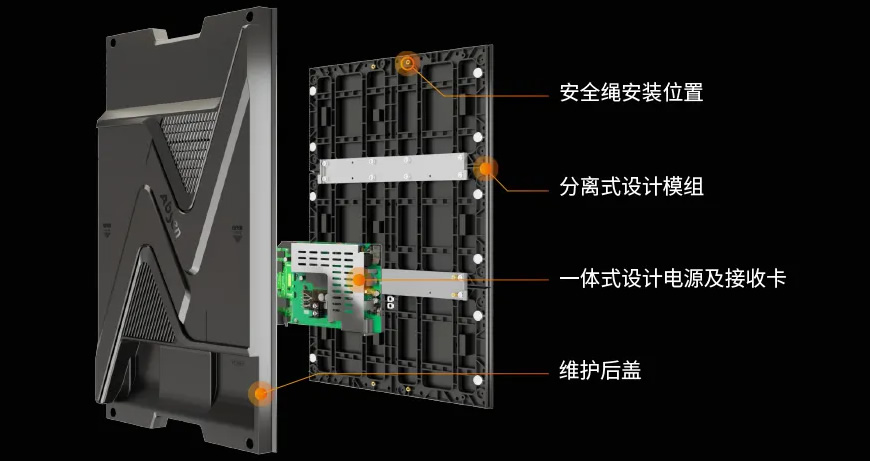 支持模组、电源、接收卡完全前/后维护,简单易操作。