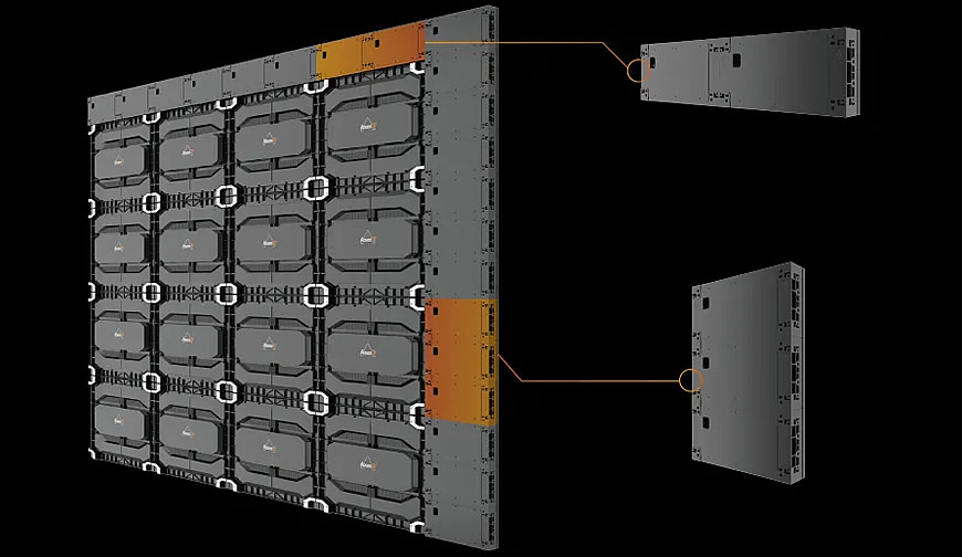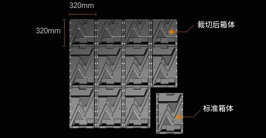 箱体可裁切,裁切后可与标准箱体上下拼接,实现模组级尺寸调整,客户可灵活匹配屏体尺寸需求