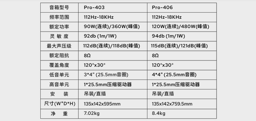 Pro-403/Pro-406/Pro-408外形纤细,呈现恰当的可变声音覆盖角度——水平120°、垂直30°,以提供真正的动态范围和高精度的声音,从而轻松获得更理想的聆听效果。纤长的箱体具有隐蔽性,大气的黑色设计与整体装修非常契合。