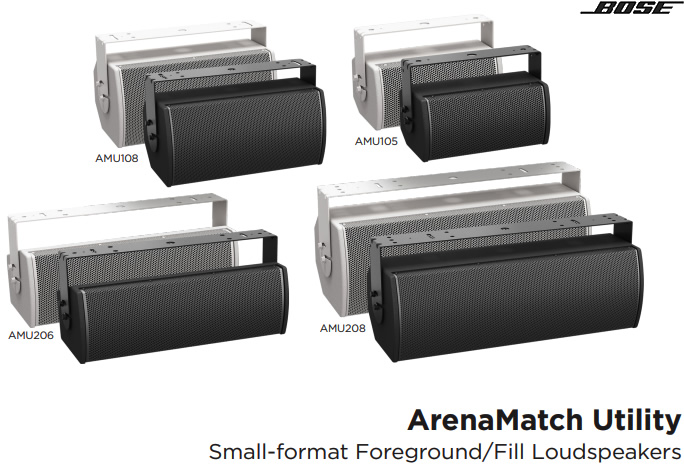 AMU206 是一款小型的 ArenaMatch Utility 型号,适用于需要从小型扬声器中获得出色音质的室外场所。它提供了宽广均匀的覆盖范围,120° × 60° 恒指向性高频号角、80 Hz–16 kHz 频率响应、122 dB 峰值 SPL,两个 Bose Professional LF6 6.5 英寸低音单元支持人声最低频段。