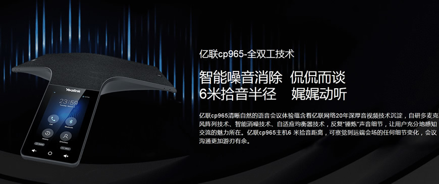 亿联CP965-新一代亿联网络音频处理算法升级,无论参会者在会议室哪个角落,都能很好地被聆听。