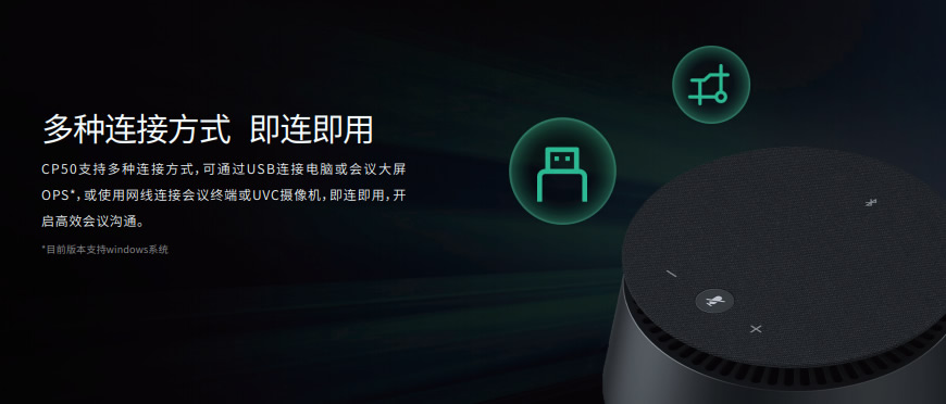 亿联CP50是一款集超强拾音、无损放音、消噪消混响等功能于一身的专业级视频会议全向麦克风。基于亿联领先音频技术及AI算法技术,搭载8单元全向麦克风阵列、高品质全频扬声器,优质拾音扩音,让人声更通透自然;集成静音、音量+、音量-、蓝牙实体按键,同步会议软件状态,可轻松实现对会议的控制;支持桌面级联方式,部署灵活简便,满足各种会议场景需求。