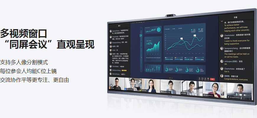 丰富信息一屏展现,不干扰会议进程,带来沉浸的混合会议体验